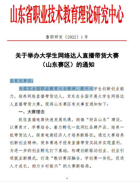 关于举办大学生网络达人直播带货大赛(山东赛区)的通知