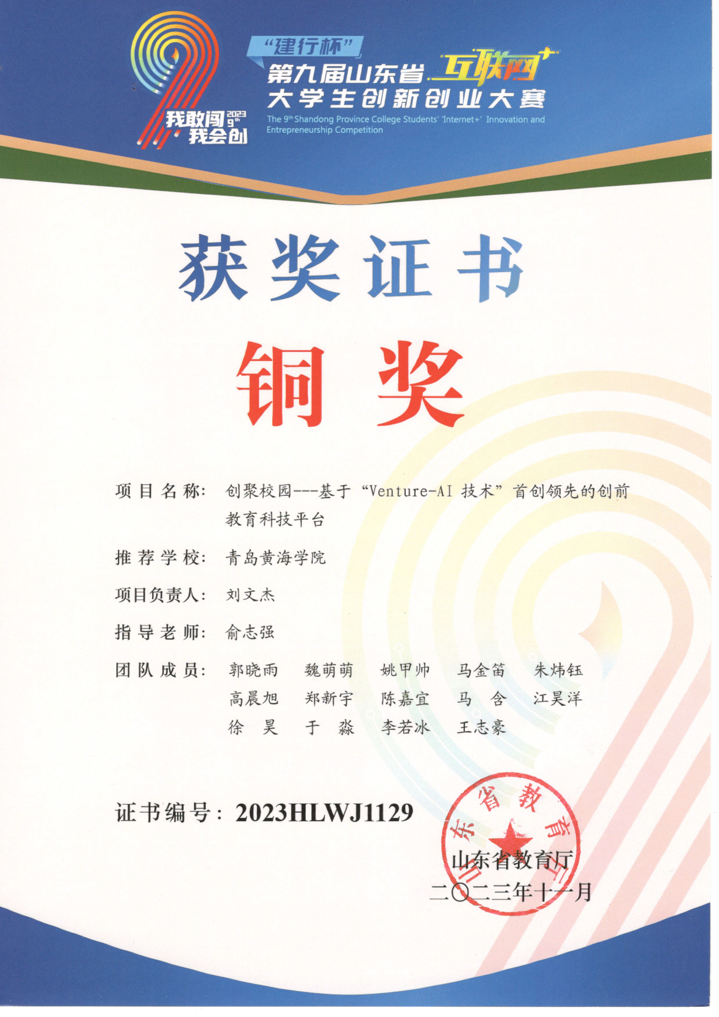 承担校级课题两项,结题一项,在研一项,分别为:1. 基于大学生创新创业团队培养及实践的学生工作研究,2018。2. 工作室模式下的“以赛促创”创新创业人才培养路径,2020。参与著作中国海洋大学出版社出版的《“院园合一”机制下跨境电商工作室制人才培养》一书。