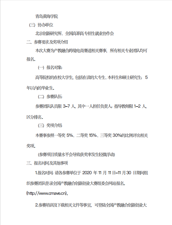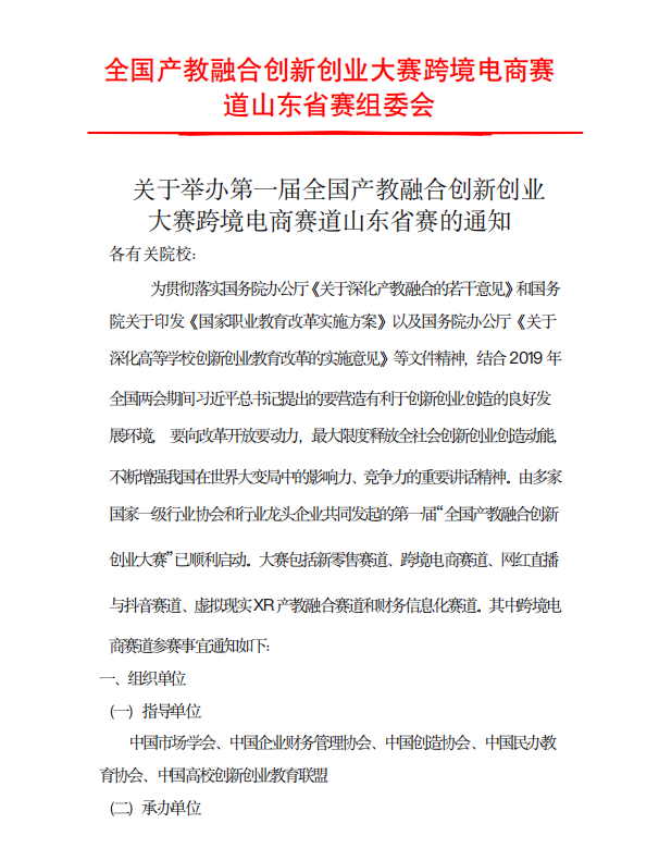 山东省产教融合创新创业大赛初赛通知