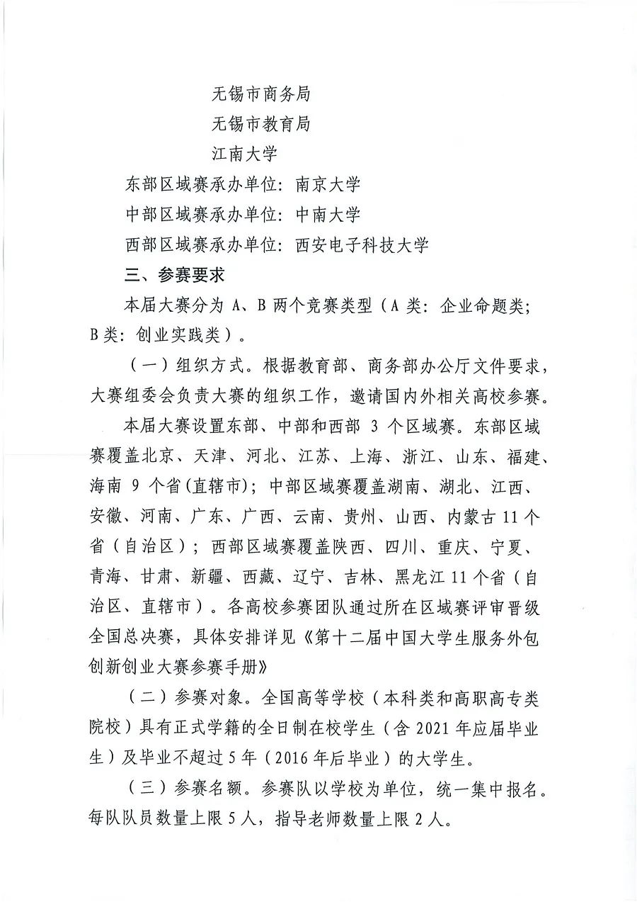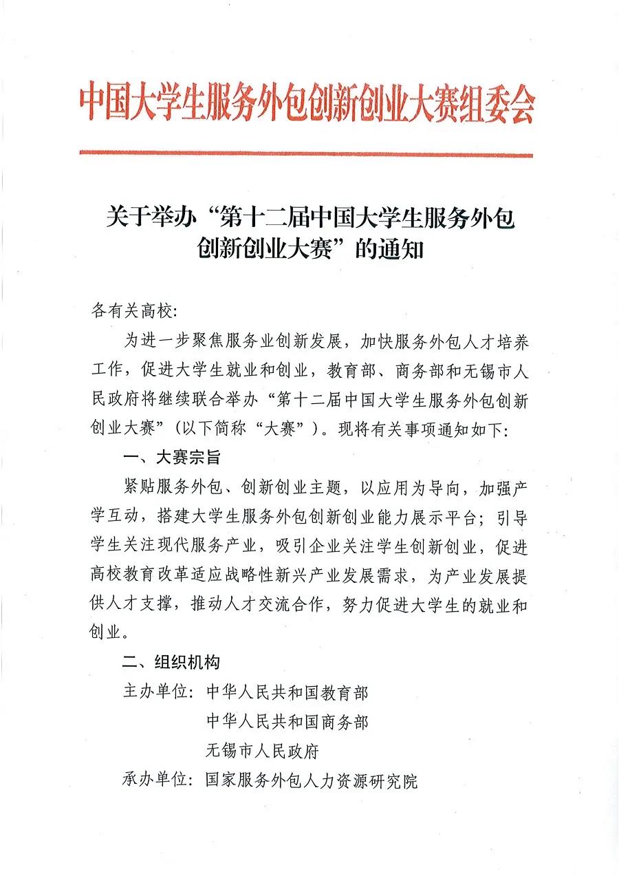 关于举办“第十二届中国大学生服务外包创新创业大赛”的通知