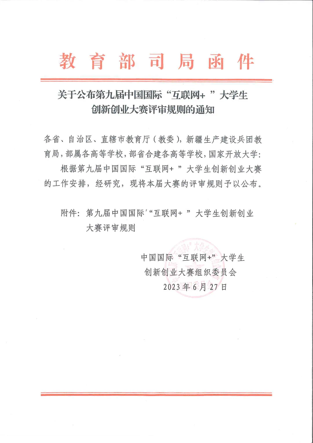 第九届“互联网+”大赛评审规则正式公布