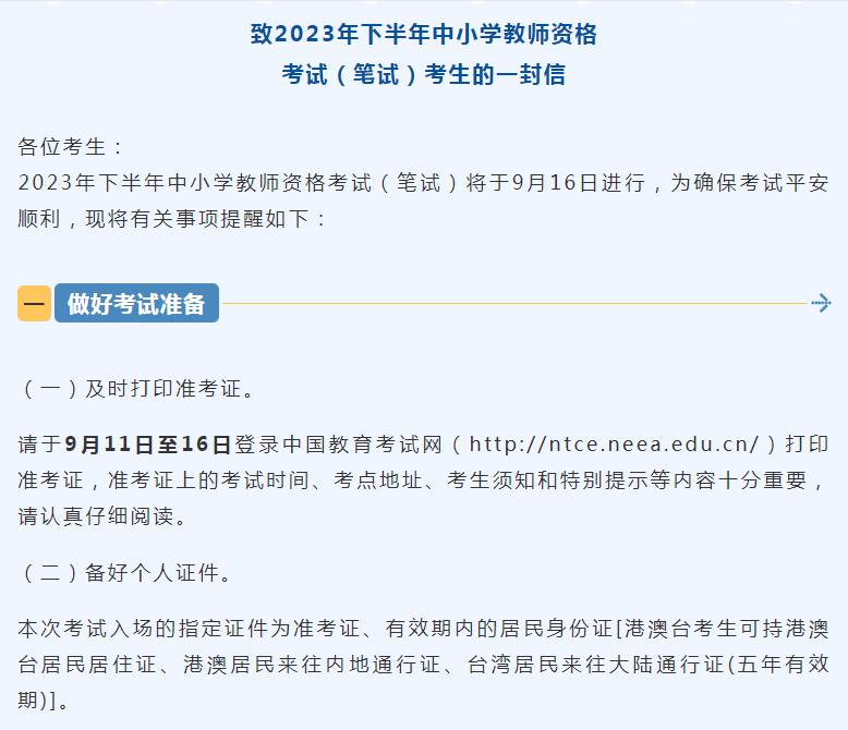 打印准考证!致中小学教师资格考试(笔试)考生的一封信