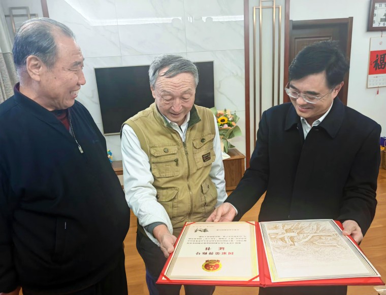10月23日下午,董事长刘常青带队看望载誉归来的“人民工匠”、我校客座教授许振超,对他荣获“人民工匠”国家荣誉称号致以热烈祝贺和崇高敬意。校务委员会副主任、关工委主任宋庆泽,党委委员、宣传部部长李镇江陪同看望。