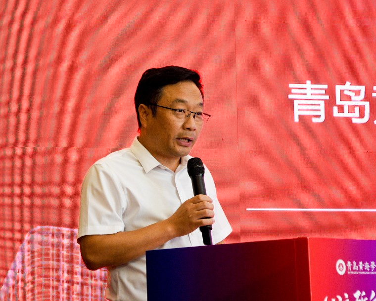 孟广东在致辞中代表学校全体师生,向百忙之中专程赶来的校友们表示最热烈的欢迎,并向为分会筹备工作付出辛劳的各位校友致以衷心感谢。孟广东回顾了学校近三十载的发展历程和办学成果,并为校友们在各行各业取得的成就感到骄傲。他指出,青岛分会的成立,是对学校与地方校友“纽带作用”的深化与升级,多年来,青岛地区的校友们以“抱团发展、反哺母校”的情怀,搭建了校企合作的坚实桥梁,众多校友企业每年为学校提供实习就业岗位,助力学弟学妹成长。对分会未来发展,他提出三点期望:希望分会成为凝心聚力的“校友家园”,构建校地协同的“发展共同体”,彰显黄海精神的“品牌力量”。最后,他向全体青岛校友发出诚挚邀请,欢迎大家在学校建校30周年之际常“回家”看看,为母校发展建言献策。
