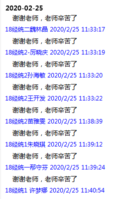 老师的辛勤付出换来了学生们的高度评价,同学们在上完课后,都会主动跟老师说一句:老师辛苦了。很多同学自发的将自己对在线教学的感受发给老师,对老师精心的课堂准备点赞。