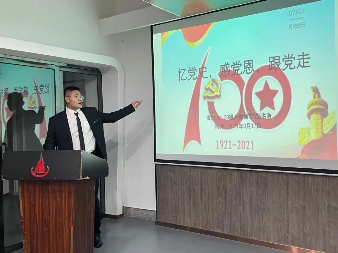 2021年,中国共产党迎来百岁华诞,因为有共同的理想,我们在阅读革命前辈的伟大事迹中产生了共鸣。在建党100周年之际,大数据学院于3月21日19:00在知新楼四楼会议室开展了“青春心向党,筑梦新时代”演讲活动决赛,参赛同学以生动优美的话语来赞颂我们伟大的党和国家。大数据学院团总支书记武浩雨,指导教师李馨、李新新出席此次活动。