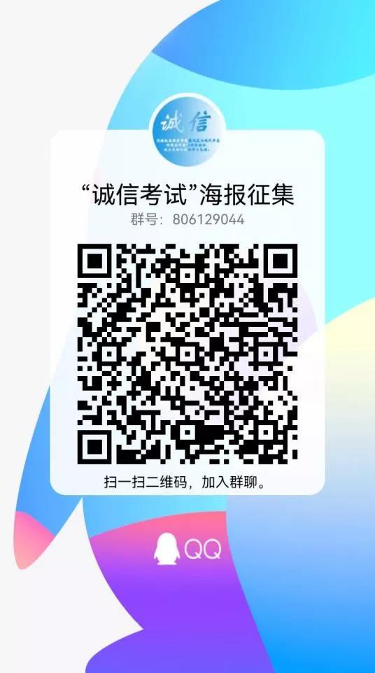 以“诚信考试”为题,面向大数据学院征集优秀作品。从青年学生的角度出发。用海报的形式展现青年道德风范与现代审美。体现当代青年守信精神和青年的鲜活生命力,建立良好和谐的学习氛围,凸显“诚信”的主题。