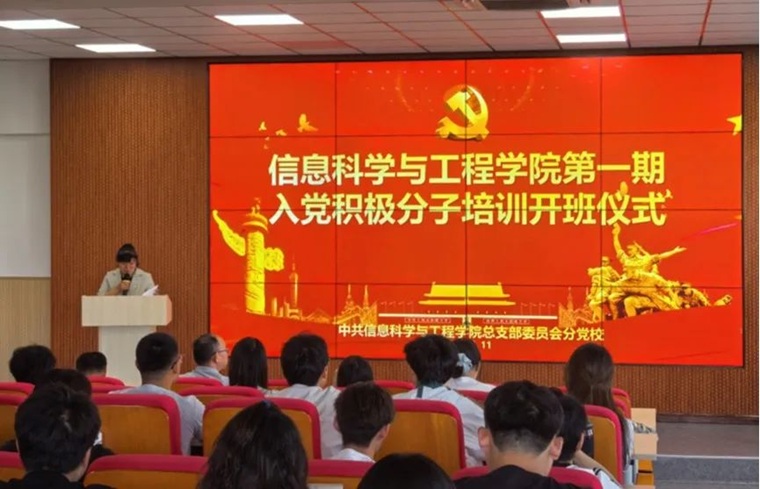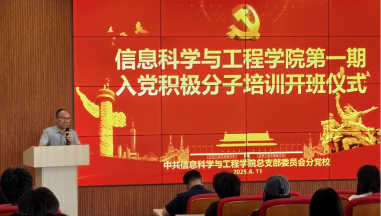 为了深化其对党的认识,端正入党动机,系统学习党的理论、方针与政策,提升政治素养和思想觉悟,坚定理想信念,入党积极分子培训开班仪式正式拉开帷幕,信息科学与工程学院于2025年6月11日在知新楼二楼东配201报告厅成功举办入党积极分子培训班开班仪式。