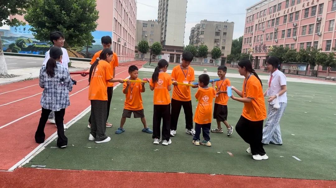 早饭过后,金秋的阳光暖暖地洒在操场上,空气中弥漫着欢快的气息。志愿者们带着精心准备的趣味拓展活动,与孩子们共同度过一段充满挑战、协作与无限欢笑的时光。