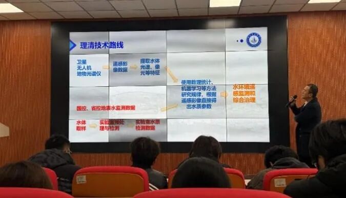 报告伊始,邢军博士以“学习的最大动力是什么?”为题,结合自身学习与科研经历,指出兴趣是推动学习的重要动力,并分享了培养学习兴趣的具体方法。在“人工智能技术如何赋能行业应用”部分,邢军博士系统阐述了“AI+”的必要性,并以水质遥感反演为例,深入解析了遥感技术、环境监测、水文学、地理信息科学、光学、统计学与人工智能等多学科的交叉融合路径。