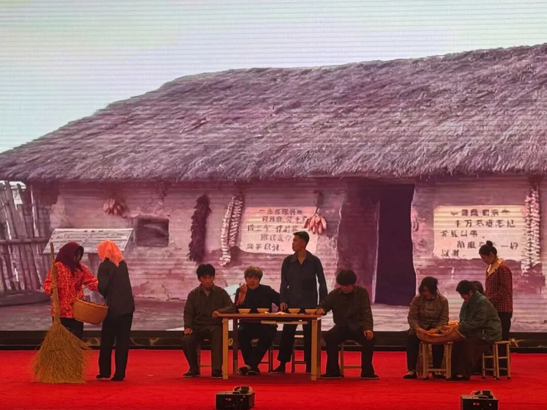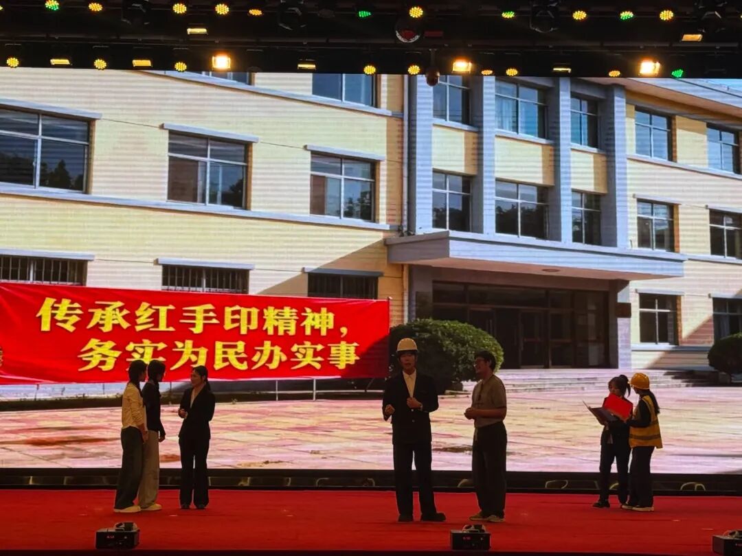 场景切换至新时代基层乡镇,话剧中的基层干部从推诿懈怠,到被点醒初心。他们俯身扎根乡土,从“被动履职”变为“主动担当”,用精准调研和务实举措为乡亲们办事,生动诠释了基层干部的实干底色。
