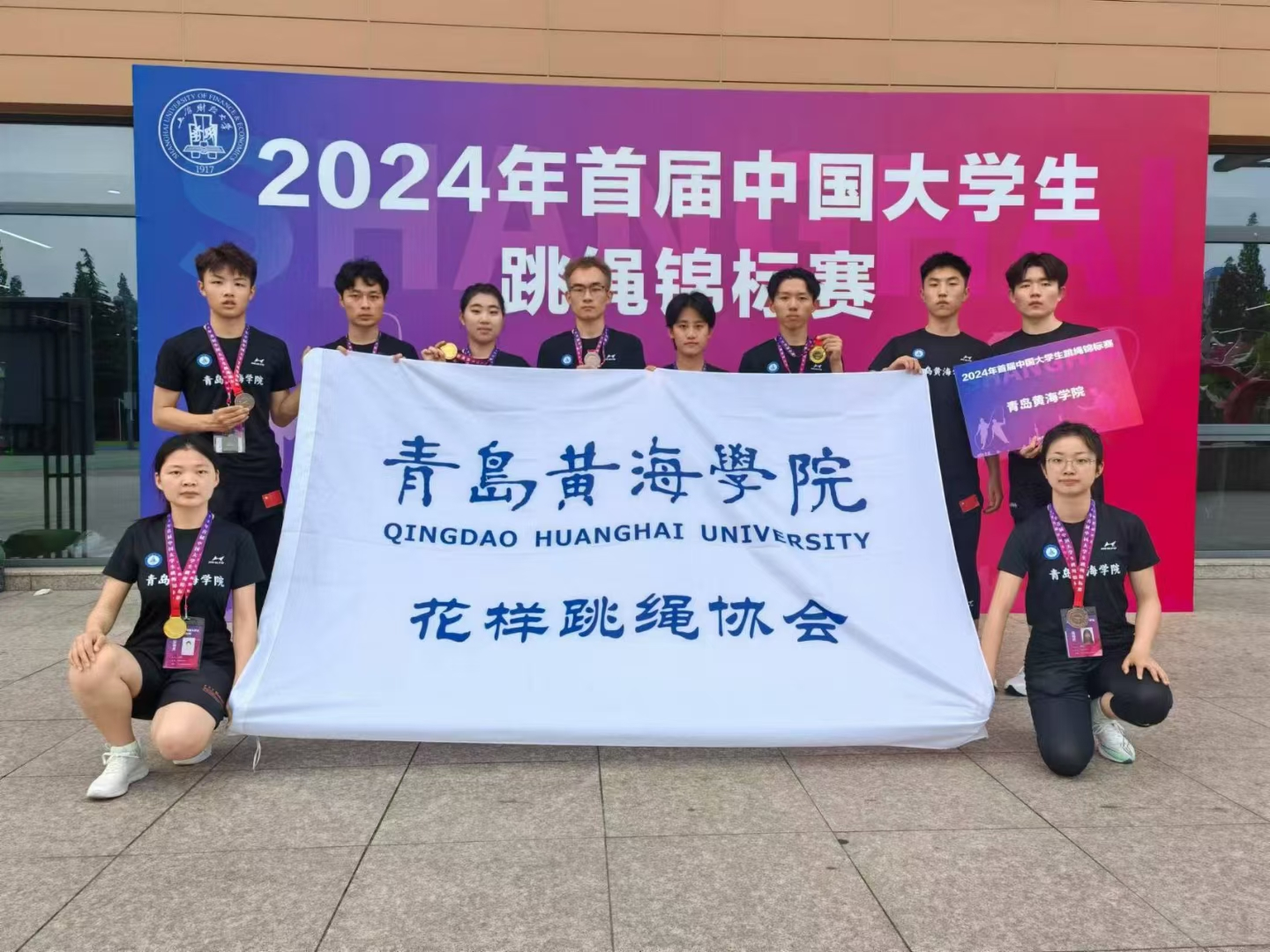 青岛黄海学院跳绳队第一次在线下参加国家级的跳绳锦标赛,荣获甲组 30秒交互绳速度跳第一名,乙组30秒交互绳速度跳第三名,乙组2*30秒双摇接力第七名,乙组4*30秒单摇接力第八名。