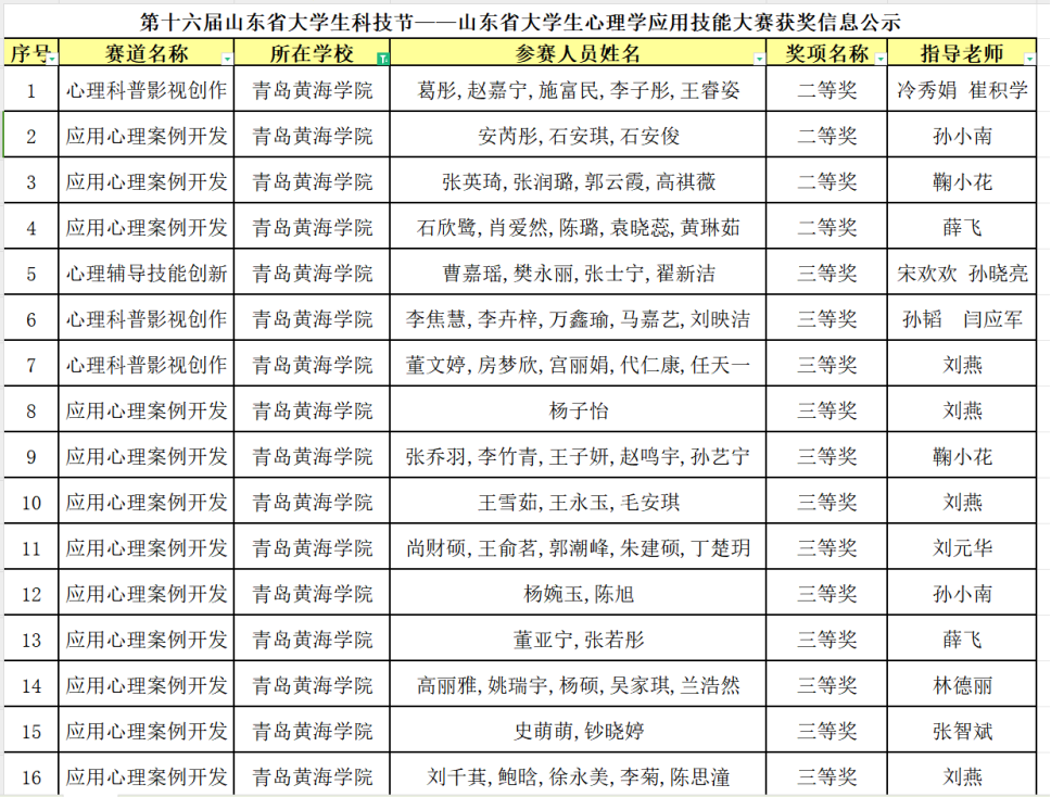 近日,由山东省科学技术协会、山东省教育厅、共青团山东省委员会、山东省发展和改革委员会、山东省工业和信息化厅、山东省人力资源和社会保障厅联合主办的第十六届山东省大学生科技节——山东省大学生心理学应用技能大赛决赛在济宁职业技术学院落下帷幕。大赛设有心理辅导技能创新、心理教育教学创新、应用心理案例开发、心理科普影视创作4个赛道。我校200余支队伍参与比赛,与省内外108所高校、2585支队伍同台竞技,荣获二等奖4项,三等奖12项。在全省民办高校中获奖数量遥遥领先。