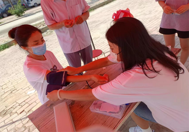 为进一步深入开展党的群众路线教育实践活动,增强村民健康意识,提高村民身体素质,让广大居民群众真真切切地感受到志愿服务的温暖,2022年7月15日,青岛黄海学院护理与健康学院“爱心义诊小组”赴德州市齐河县大黄乡开展暑期“三下乡”活动,为村民送温暖、送健康,用实际行动践行医学生的使命担当。