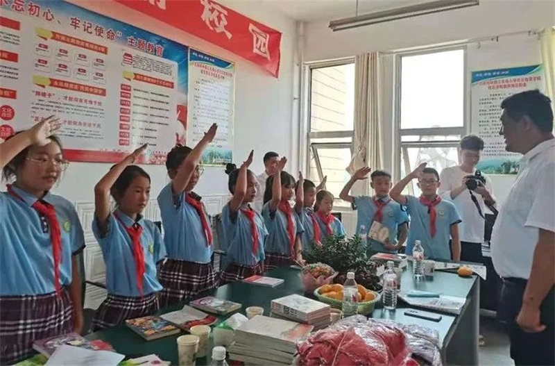 活动期间,在平邑团县委副书记林玉晓的陪同下,赵国光部长一行来到柏林镇三关庙小学,为部分留守儿童进行了爱心助学捐赠。赵国光部长将352册图书、107件衣物、124件文体用品等物品亲手交到了孩子们的手中,孩子们用标准的敬礼表达出内心的感动与真挚的谢意。赵部长勉励孩子们要将这份爱心转化成为学习动力,勤学善思,刻苦学习,将来用实实在在的实际行动回馈社会。