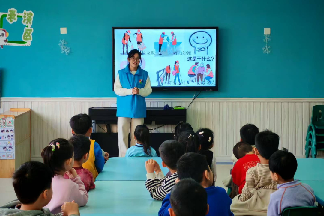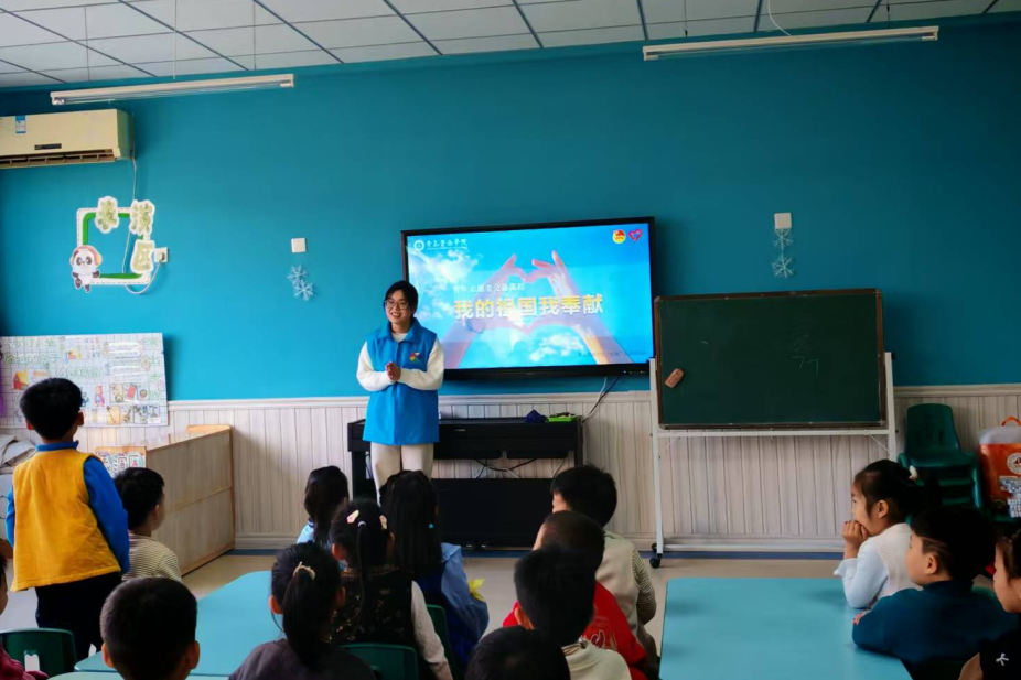 2024年12月5日,青岛黄海学院“红烛”志愿服务队走进青青果幼儿园,开展了一场意义非凡的“我的祖国我奉献”课程宣讲活动。此次活动聚焦雷锋精神与爱国情怀的传递,旨在孩子们纯真的心田中播撒下奉献与热爱的种子。