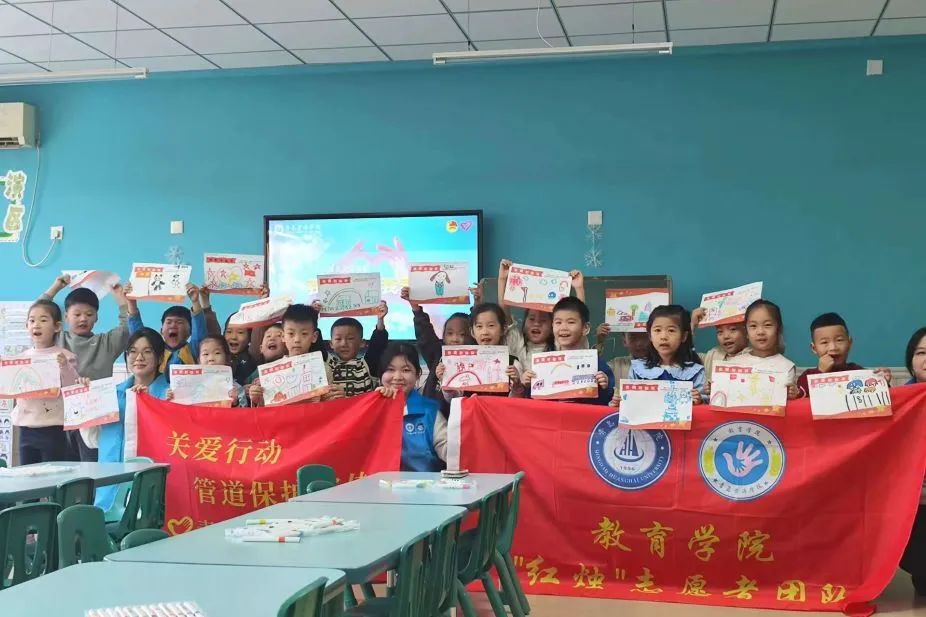 在课程尾声,活动在那欢快悠扬的《国旗国旗真美丽》歌声中缓缓落下帷幕。志愿者们与孩子们手拉手,心贴心,一同留下了珍贵的合影留念。镜头之下,那一张张天真无邪的笑脸,如同春日里绽放的花朵,洋溢着无尽的快乐与希望。而在那动人的歌声里,一颗颗饱含爱国情怀的种子,正悄无声息地深埋进孩子们的心田,只待岁月的滋养,破土而出,长成参天大树。