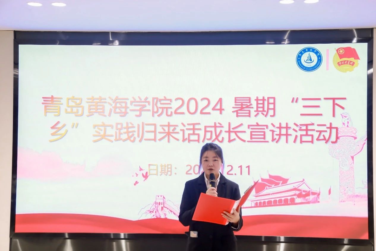 “三下乡”是指志愿者深入农村,开展文化、科技、卫生方面的服务活动。这不仅能为农村带来知识和技能,还能加强城乡交流,推动农村发展,提升农民生活质量,同时也让志愿者在实践中锻炼成长,具有重要的社会意义。为深入学习贯彻习近平新时代中国特色社会主义思想,引导和帮助青年学生在社会课堂中受教育、长才干、作贡献,争做有理想、敢担当、能吃苦、肯奋斗的新时代好青年。青岛黄海学院在暑假期间积极组织本校大学生参加以“青春为中国式现代化挺膺担当”为主题的暑期社会实践志愿服务活动,并于12月11日14:30-15:10在知新楼举办2024暑期“三下乡”实践归来宣讲活动。