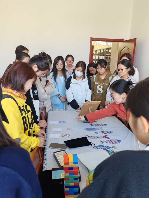 讲解老师向各位参观同学详细介绍了心理中心的概况、个体咨询的预约方式和流程等方面。随后,带领同学们参观了个体咨询室、沙盘室、宣泄室、音乐放松室、团体辅导室、社团工作室等9个功能房间,并邀请同学们现场体验了OH卡牌、合力塔建等活动。