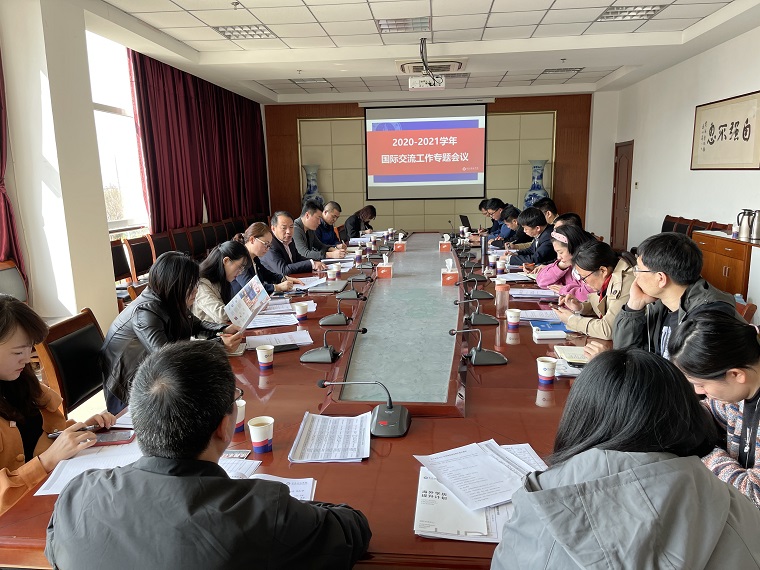 4月7日上午在行政楼201会议室召开了我校2020-2021学年国际交流工作专题会议。本次会议由副校长梁忠环主持,各二级学院国际交流工作分管领导、联络员及国际交流中心全体人员参加了会议。