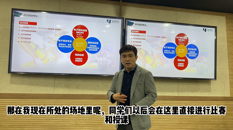 本次开班仪式,韩国湖南大学国际处处长孙婉仪及电竞系系主任丁连澈教授分别发来祝贺视频。孙处长对两校在短期内就人才联合培养项目取得的成果表示赞扬,并希望疫情结束双方早日会面,进一步推进项目合作和师生交流。丁院长就专业情况及设施做了简要介绍,同时对即将迎来黄海电竞专业留学生的到来表示极大期待。