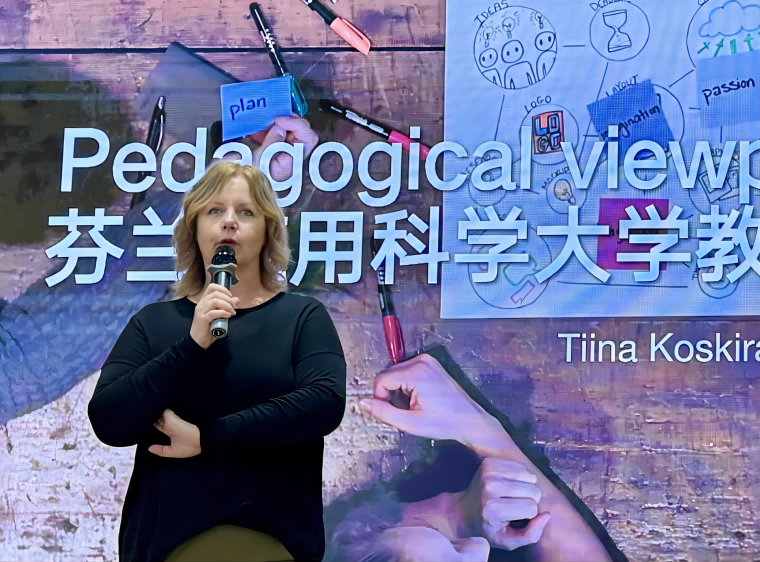 在教学方法上,Tiina教授提出了以学生为中心的教学理念,并分享了芬兰坦佩雷应用科学大学在教学方法创新方面的实践经验。她强调了教师应根据学生的个性特点和能力差异制定个性化教学方案,以激发学生的学习兴趣和积极性。这些创新性的教学模式对于提升教学效果、培养学生的实践能力具有重要意义。随后,教师们积极提问,针对提问,Tiina教授以TAMK为例,列举了大量专业方面的实践教学案例。