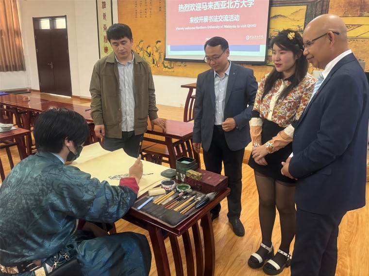 Mohammed校长一行来访期间,与我校设计与美术学院书法系学生开展了书法交流文化体验活动。