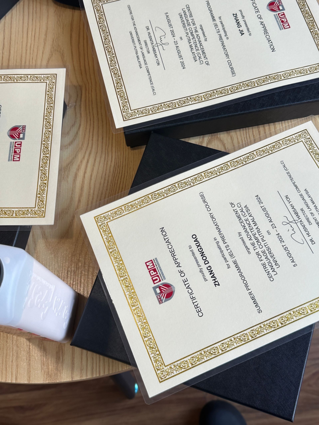 在UPM的最后一周,充满了对学校和老师以及朋友们的不舍,博特拉大学为我们准备了精彩的结业典礼和精美的毕业证书,我们和老师合影留恋。虽然不知道何时才能再次回到这个国家,但这次夏令营会成为我人生中宝贵的经历,它不仅让我在不知不觉间提升了英语的水平,更是为将来的留学做好了准备。