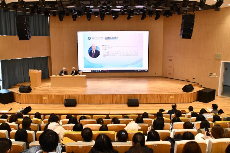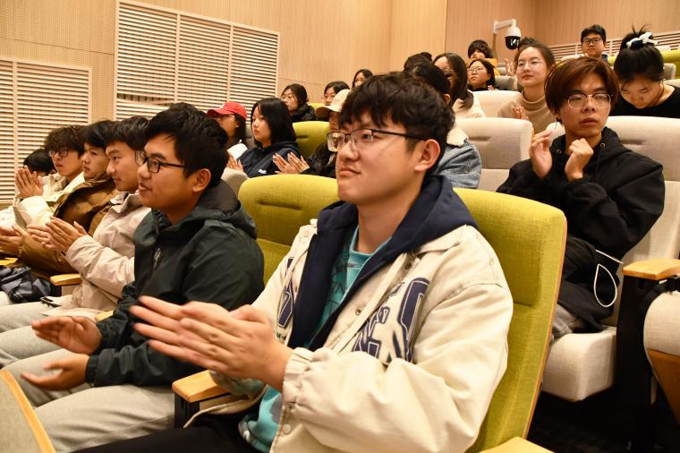 讲座尾声,刘中富院长对黄桂友教授的精彩报告进行了总结。他高度评价了黄教授以思想之线串联中外诗人与诗作的做法,认为这不仅说清了诗歌的本质,更展现了思想的自由与深刻。同时,他也强调了东西方文化既有差异性又有相通性与互融性的特点,认为人类的心灵是相通的,思想是可以互相交融的。最后,刘院长鼓励在座同学以黄教授的个人奋斗为榜样,多读书、多思考、多实践,通过读诗、写诗与诗人对话的方式让自己的思想更加深刻、感情更加丰富、人格更加强大。他强调,世界眼光与国际视野在今天的讲座中得到了充分体现,希望大家能从讲座中汲取灵感与力量,不断前行。