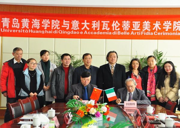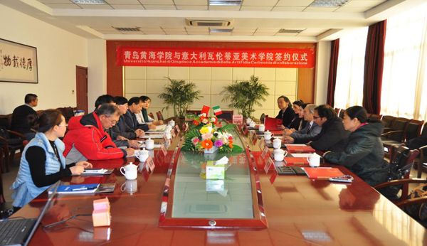 12月7日上午,意大利瓦伦蒂亚美术学院校长MICHELELICATA先生,教授ROMINA BUTTAFUOCO、DIMITRI LICATA,及意大利瓦伦蒂亚美术学院中国代表处邸建辉教授等一行8人来我校进行参观考察,我校常务副校长李武修,校长助理、综合办公室主任马永来等与来宾就国际合作办学项目进行了深入交流,并签署了交流项目合作协议书。