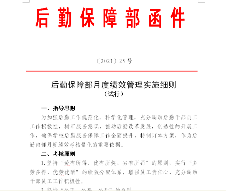 后勤保障部全面绩效考核制度 实施线上月度绩效评议