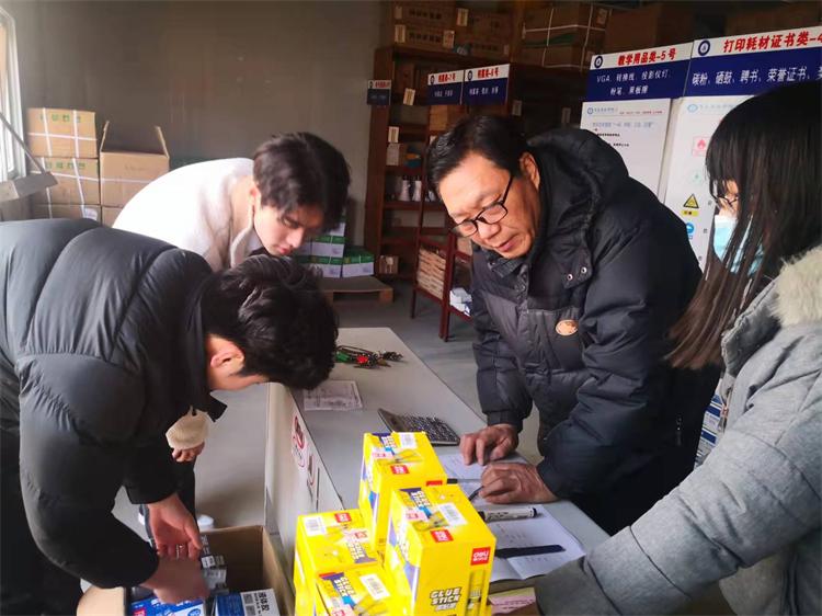为做好新学期开学各类物资保障工作,按照后勤保障部新学期工作安排,资产管理中心于3月3日至3月8日对全校15个教学单位和15个职能部门进行了开学物资集中配发,配发的主要物品有:工作记录本、直液式走珠笔、笔芯、铅笔、小刀、橡皮、胶水、固体胶、回形针、订书针、粉笔、打印耗材等10余种常规办公用品和拖布、笤帚、撮子、洁厕灵、垃圾袋、纸篓等卫生工具,现已足量配发至各教学单位。其他公用消耗品比如:打印纸、碳粉、硒鼓、卫生工具等物品,根据教学单位、职能部门需要,采取即申报即发放的形式进行配发,全力保障物资供应工作。经落实,基本满足了各教学单位和各职能部门新学期开学办公类物资需求。