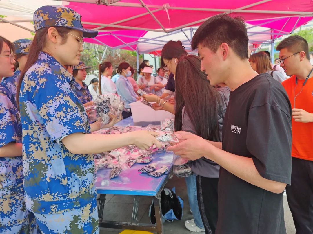 俗语说“带个香草袋,不怕五虫害”。端午将近,天气逐渐炎热,各种蚊虫逐渐活跃。古人为了确保健康,常在端午当天采用悬挂艾叶菖蒲、洗中药浴、饮雄黄酒、点朱砂、戴香囊等方法以作驱邪避瘟祈福之用。学校沿用传统习俗,采购中草药,由护理与健康学院组织同学进行装填,精心制作出5000个中药香囊,在活动现场向师生免费发放。