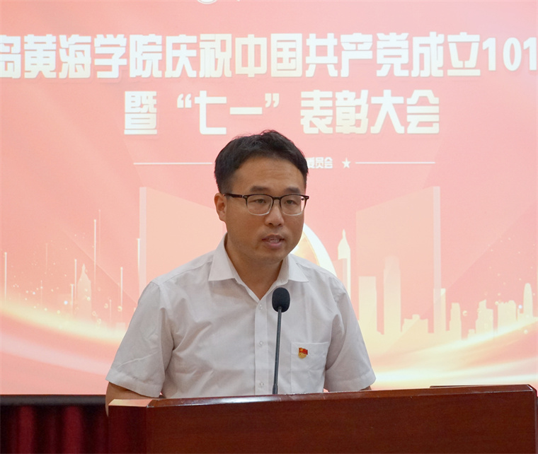 为庆祝中国共产党成立101周年,重温党的光辉历程,表彰在过去一年工作中涌现出来的优秀共产党员、优秀党务工作者。6月30日下午,青岛黄海学院在知新楼一楼西报告厅隆重召开庆祝中国共产党成立101周年暨“七一”表彰大会,学校党委书记邢桂强同志出席会议并讲话,校长、党委副书记王渊明主持会议。学校党政领导班子成员、各基层党支部书记、副书记、优秀共产党员、优秀党务工作者、党员代表等150余人参加大会。