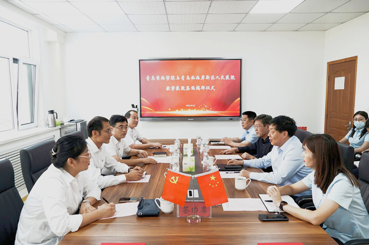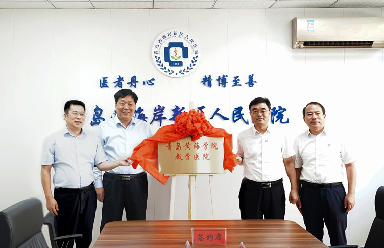 9月21日上午,青岛黄海学院与青岛西海岸新区人民医院举行教学医院签约揭牌仪式。西海岸新区卫健局二级调研员刘守田、新区人民医院党委书记、院长许学兵、副院长刘春林、科教部主任薛娇,我校董事长刘常青、副校长梁忠环、护理与健康学院常务副院长王芝发等参加签约揭牌仪式。