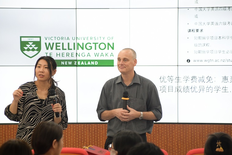 会后,薛海勤副处长在知新楼二楼多媒体教室主持了惠灵顿维多利亚大学与学生的见面会。来自国际商学院、艺术学院、学前教育学院的75名同学参加了此次见面会,活动现场反响热烈,同学们热情互动,纷纷表示有机会十分愿意前往新西兰交流体验。