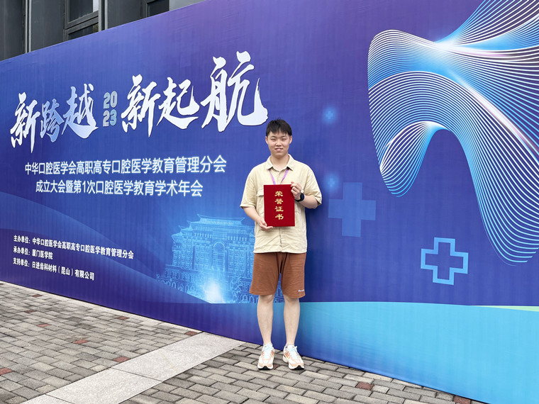 近日,由中华口腔医学会高职高专口腔医学教育管理分会主办,厦门医学校承办的2023年全国卫生职业院校口腔技能展示比赛在厦门举行。我校护理与健康学院组织2名2021级口腔医学专科学生参赛,这也是我校首次参加全国卫生职业院校口腔技能展示比赛。最终,2021级口腔医学专科2班高婧同学荣获口腔数字化扫描组二等奖,2021级口腔医学专科2班李正天和高婧同学荣获众绘虚拟仿真操作系统优秀奖。