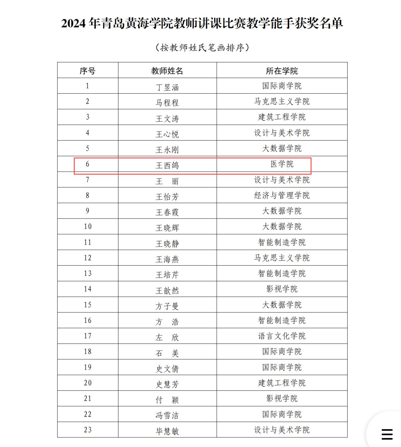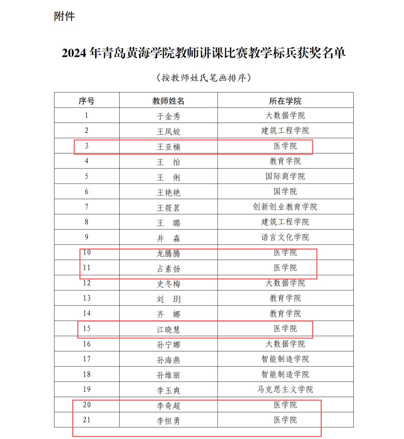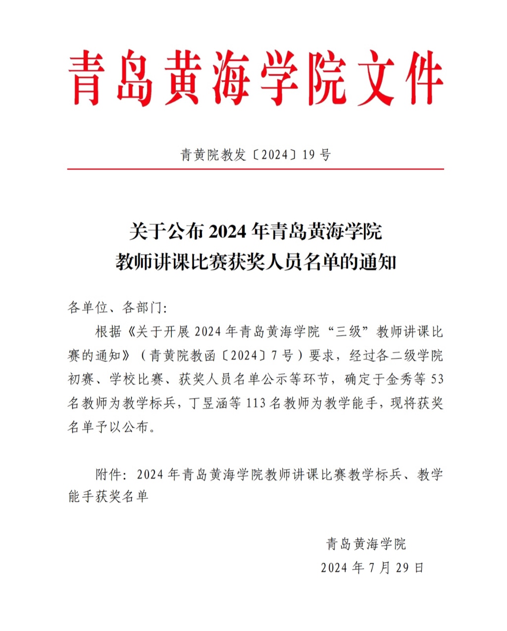 关于公布2024年青岛黄海学院教师讲课比赛获奖人员名单的通知