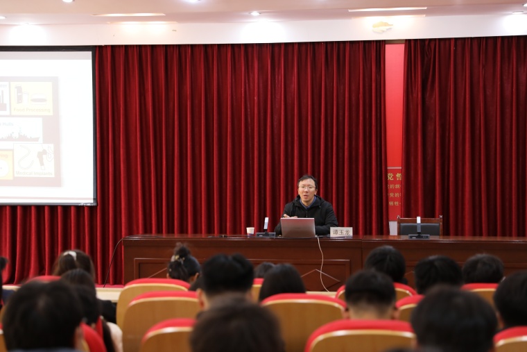 11月20日上午,青岛农业大学教授、山东省杰青、泰山学者青年专家谭玉龙在知新楼西报告厅为青岛黄海学院医学院师生开展题为“致病菌生物被膜的绿色防控技术”的专题讲座。讲座由院长助理武春飞主持。