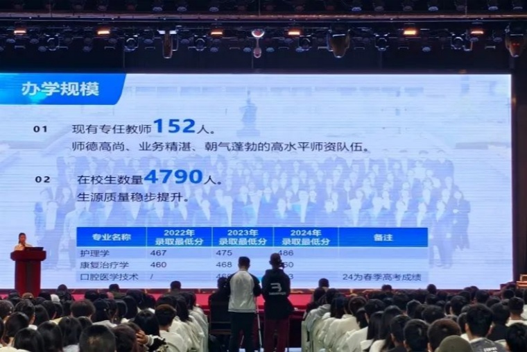 时逢国之盛世,喜得才俊泱泱,在这美好的金秋时节,医学院迎来了1600余名新的“黄海人”,为学院注入了新鲜血液。与此同时,为了帮助同学们端正专业思想,明晰专业培养目标,明确专业学习任务,确定自己的奋斗目标,初步进行职业生涯规划,有目的、有计划的学习。学院于2024年10月10日、11日于体育馆开展了医学院2024级新生始业教育报告会。此次报告会参会人员有学院党总支书记、副院长王芝发;学院院长助理孙延贺、武春飞、綦盛楠;教学秘书施恩;学工秘书矫立波、逄锦涛;团总支书记董寅宵;就业主任张茂文;医学院全体辅导员以及医学院2024级全体新生。本次报告会由綦盛楠院长与董寅宵书记的主持,会议共有三项议程。
