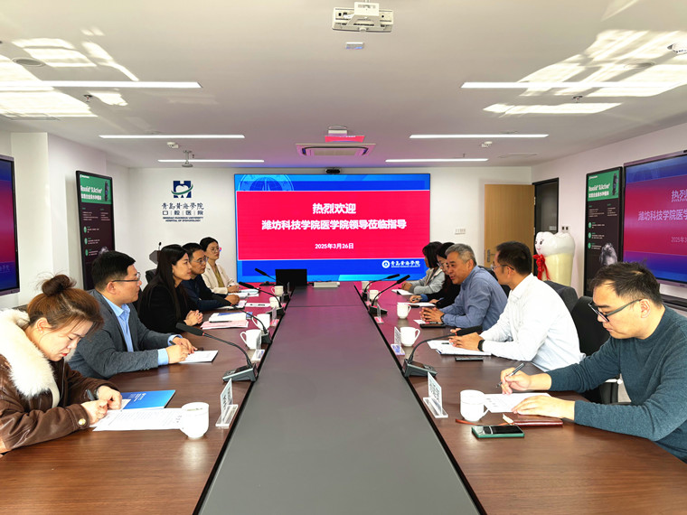 2025年3月26日,潍坊科技学院医学院院长田会率副院长武敬亮、伦凤兰,实训中心主任李春晖及实验室主任李娜一行5人,赴我校医学院开展考察交流活动。青岛黄海学院副校长、医学院院长王鹏程、副院长王芝发、院长助理武春飞、院长助理孙延贺、实验室主任徐翠梅参加座谈。