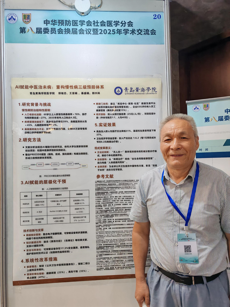 会上,郭继志教授以“AI赋能中医治未病:重构慢性病三级预防体系”为题进行海报展示,深入剖析了我国慢性病防治在老龄化、医疗资源分配等方面面临的挑战,创新性提出“AI+中医三级预防”体系。王亚楠老师分享了其主持的校级教改项目成果,论文题为“深度融合视域下‘一核两翼’教学模式在《预防医学》课程思政中的实践探索与启示”,该模式通过精选案例提升课堂吸引力与学习热情,利用AI技术赋能思政内容精准、智能化融入,高效创设教学环境,显著优化了学生学习体验,为医学教育课程思政改革提供了创新实践范例。