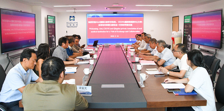 2025年9月18日上午,墨西哥美洲中心大学(CEUNI)校长José Rodrígues Corro、Aioi(国际口腔学术机构)总干事Wilmer Yabar及青岛市民营口腔协会会长王聿明等一行10人莅临青岛黄海学院考察交流。青岛黄海学院校长李清山、副校长兼医学院院长王鹏程、青岛黄海学院国际交流与合作处处长谭春波、青岛黄海学院医学院名誉院长张玉根、青岛黄海学院医学院常务副院长王芝发、青岛黄海学院医学院副院长綦盛楠等出席接待活动。双方在附属口腔医院201会议室举行了座谈交流并签署了合作意向协议。会议由王鹏程副校长主持。