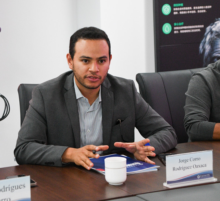 医学院常务副院长王芝发介绍了医学院的基本情况及口腔医学专业的建设与发展情况。墨西哥美洲中心大学副校长Jorge Corro Rodríguez Oaxaca随后发言,介绍了该校的历史沿革、专业优势,并表达了合作意向。