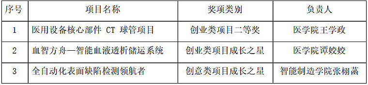 经初赛、复赛、决赛,由链主企业、创投机构、孵化平台高管以及高校专家组成的专业评审团评审,评出各赛道一、二、三等奖及优胜奖、成长之星奖等共68项。本次大赛我校共获得三个奖项,详细情况如下: