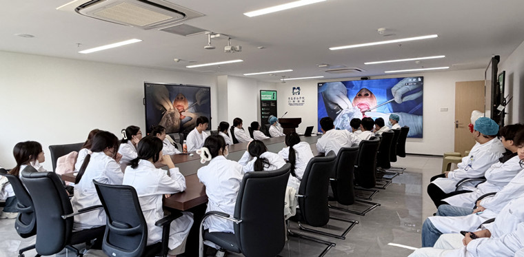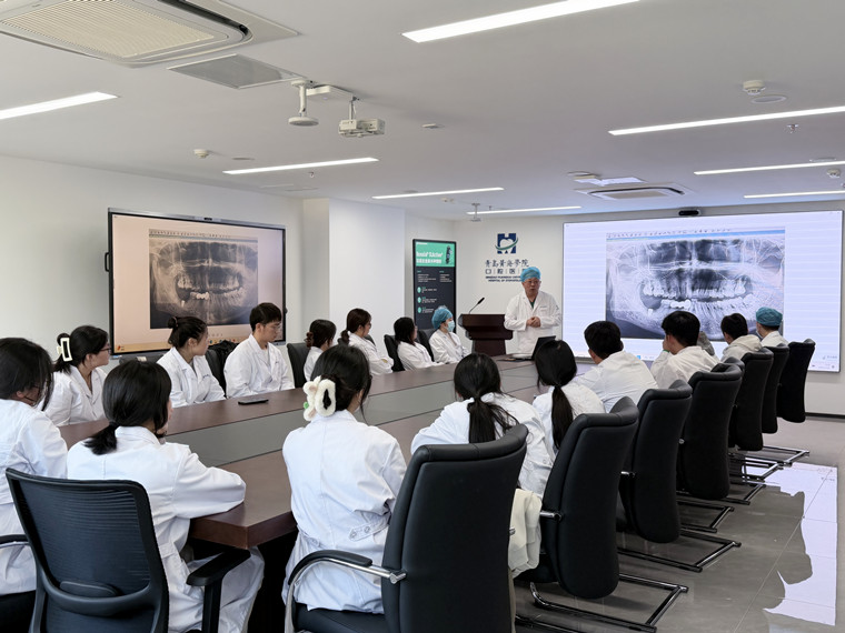 一堂特殊的“手术直播课”在青岛黄海学院附属口腔医院举行。医学院24级口腔医学专业的学生们通过先进的远程示教系统,实时观摩了由邵丹院长主刀的一台高难度数字化种植牙手术。