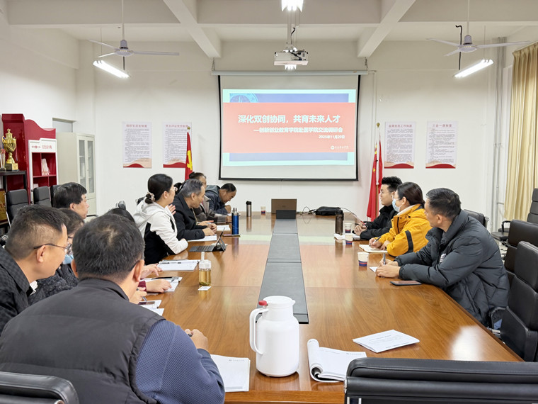 2025年11月20日,为科学谋划、高质量编制学校“十五五”创新创业教育规划,深化双创教育协同,共育符合时代需求的医学创新人才,创新创业教育学院副院长甄程与院长助理于振邦赴医学院进行专题交流。会议由医学院副院长綦盛楠主持,各系部主任及学科带头人参会,聚焦医学类学生创新创业、就业保障及人才培养工作进行交流研讨。