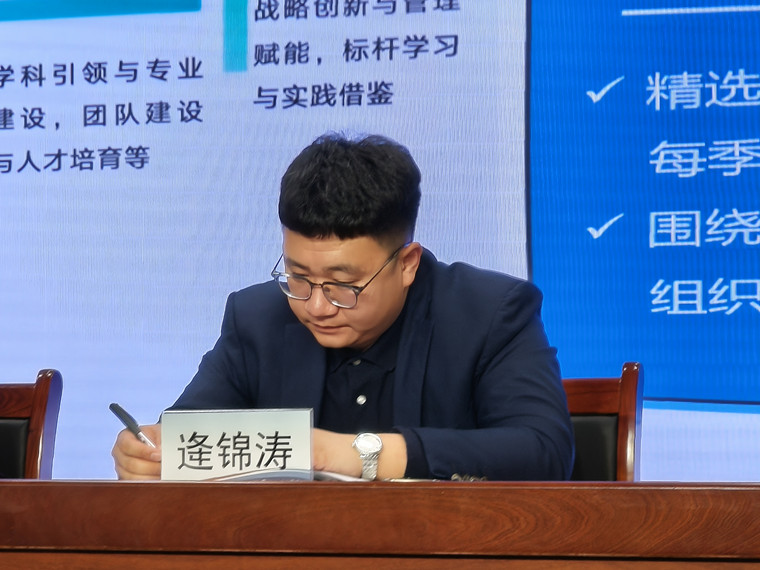 随后,学院各分管领导围绕教学、学生工作与综合管理、科研工作进行了专题汇报。綦盛楠副院长指出,2025年学院教学运行平稳,标志性成果实现突破,2026年将紧扣“稳运行、育项目、提质量”主线,重点抓好金课计划、教材编写及学风建设等工作。