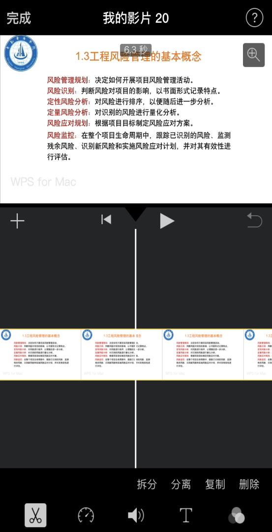 APP imovie 进行剪辑,直接把想截取的部分拆分删除就可以了(如下图)。另外
