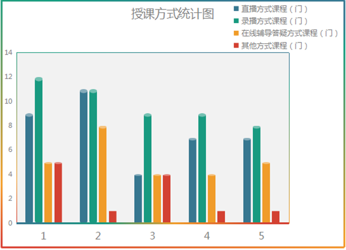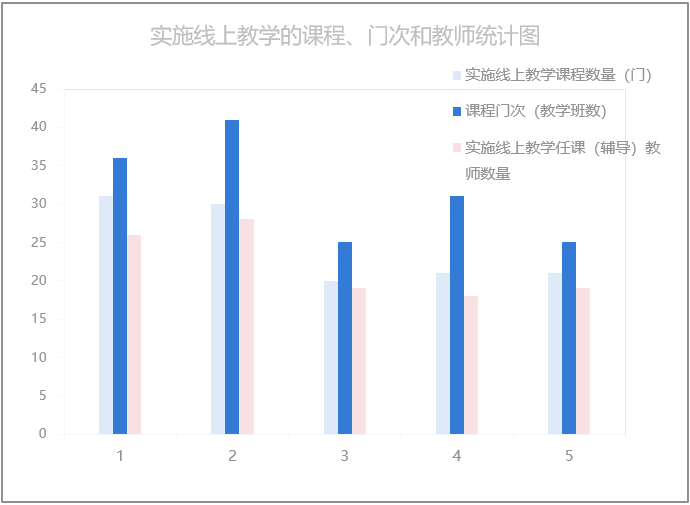 1、其中本周详细实施线上教学课程数量、课程门次和线上任课教师数量统计图如下: